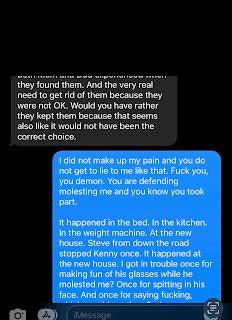 Here I am, sitting in the waiting room of a treatment center waiting to talk to someone about my abuse and get a diagnosis and this is what happens to victims. And trouble if you report.